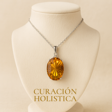 Natural Brazilian citrine necklace, handmade statement jewelry, sterling silver pendant, healing crystal necklace, large citrine gemstone, Curación Holística jewelry, free shipping jewelry, 90-day money-back guarantee, artisan citrine necklace, luxury citrine pendant.